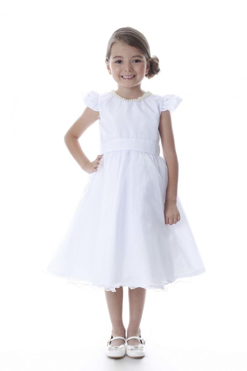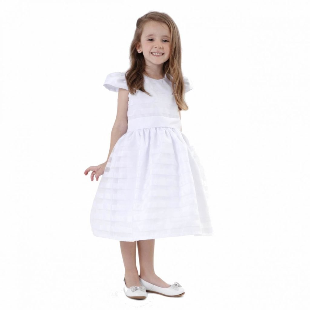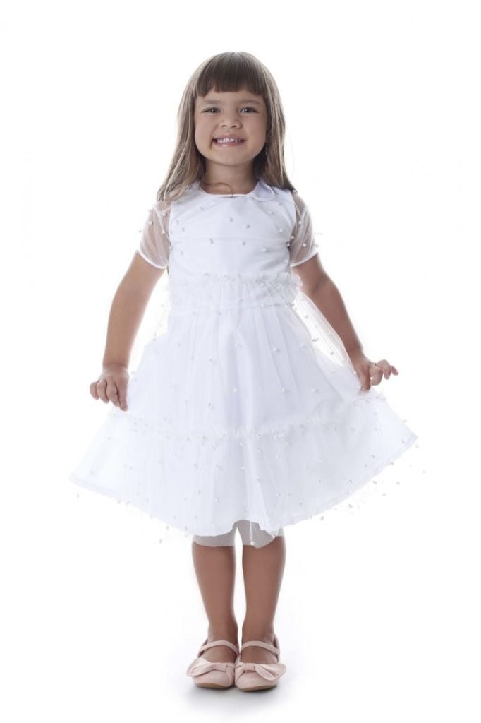 O vestido de cor branca tem as suas vantagens, a sua filha poderá usá-lo muitas vezes depois. Ela pode ser daminha de casamento com ele, ou pode usá-lo no seu batismo evangélico ou primeira comunhão.